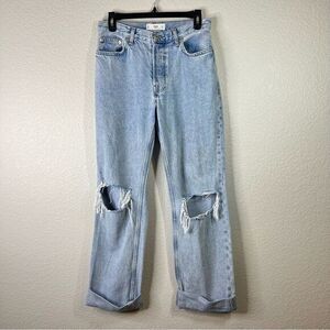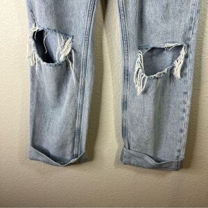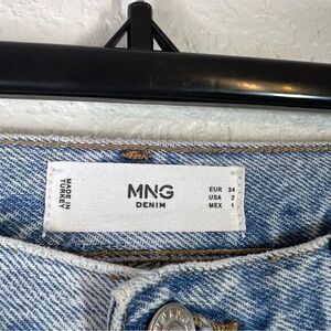 MNG Mango Womens Distressed Jeans Straight Light Wash Cuffed Straight Denim 2
