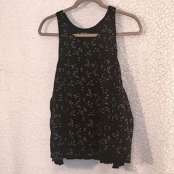 EUC Nice on the silky side black with little white birds, looks like to me. MNG Basics USA size Xl looks to run smaller.