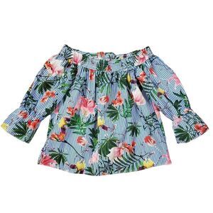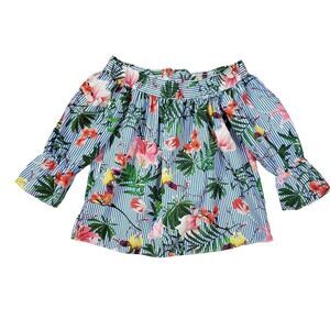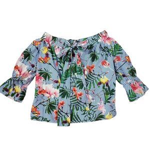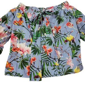 MNG by Mango Floral Stripe Bow Back Off Shoulder Top Size 6
