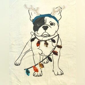 MNK Marc New York French Bulldog Christmas Sweatshirt with Sequin Light Bulbs and Fuzzy Reindeer Antlers, Size Medium.