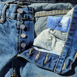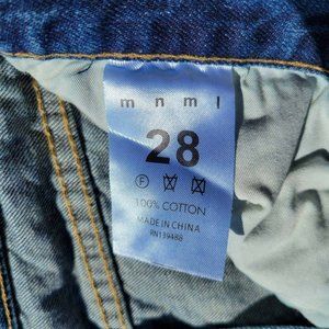 MNMI Womens Straight Leg Jeans Blue Bleach Spots Distressed Button Fly Denim 28