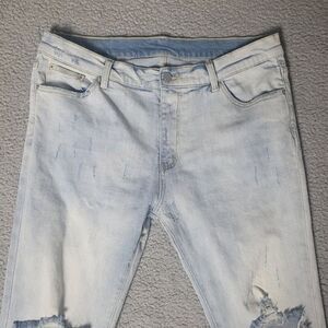 MNML Jeans Mens 36 Light Blue Denim Distressed Faded Slim Streetwear Slim Skinny