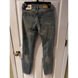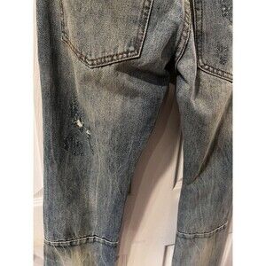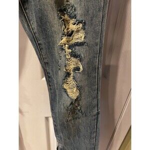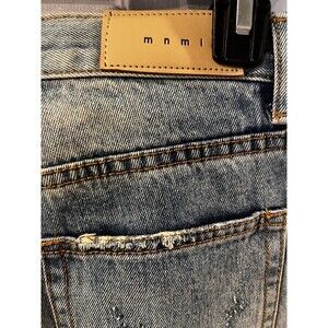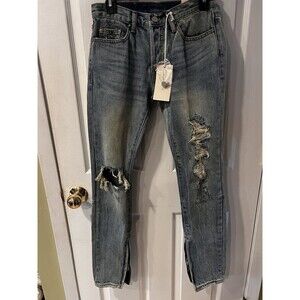 MNML Mens Size 28 Jeans Distressed & Destroyed Zipper Legs Button Fly Slim NWT. Waist measures approx 30 Rise measures approx 9 Inseam measures approx 32