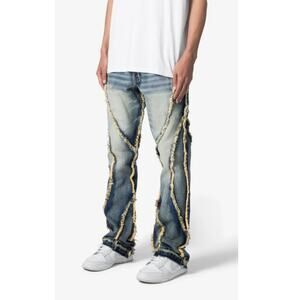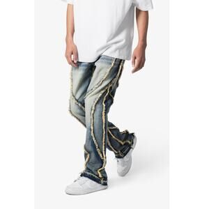 MNML Men's Medium Blue B638 Ethereal Flare Rip Denim Jeans Size 32