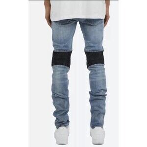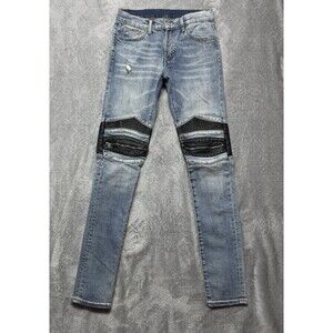 MNML Men’s Moto Biker Distressed Leather Knee Skinny Jeans Size 29x33