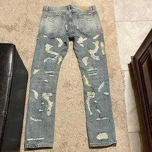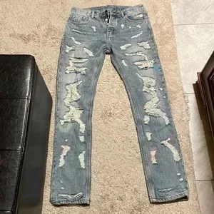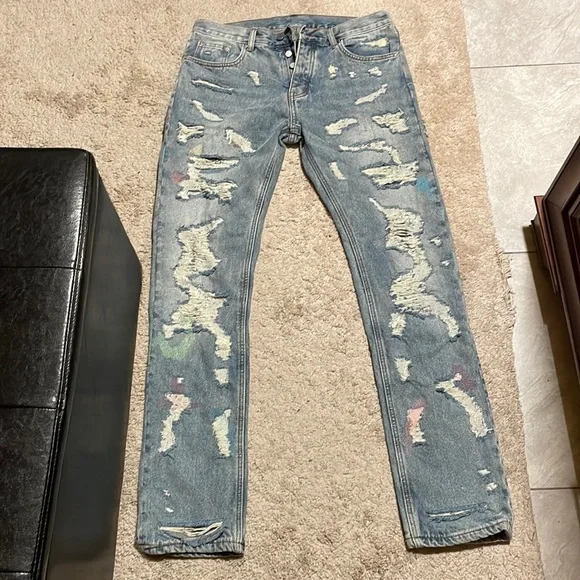 MNML RIPPED DENIM is designed with our new D fit which is relaxed throughout with an extended inseam for stacking and features a light wash, distressing throughout, and finished with multi color embroidery details throughout.