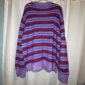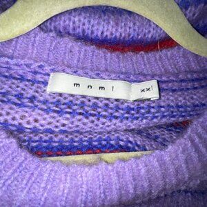 MNML Striped Mohair Wool Blend Sweater XXL Purple Magenta Blue