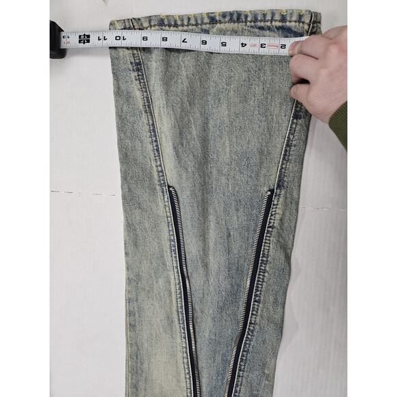 MNML Zipper Flare Denim Jeans Men's Size 28 Light Vintage Wash Streetwear Y2K