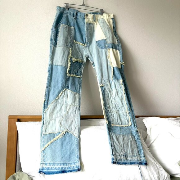 MNML patchwork denim jeans are in men’s 34 inch waist