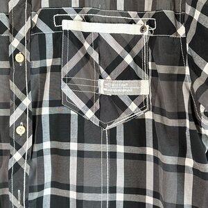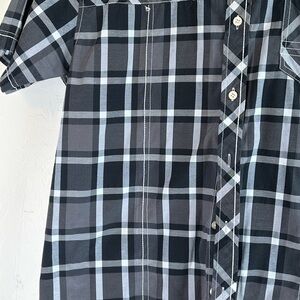 Most Official 7 Men’s Black & White Plaid Button casual dress Shirt with collar, front pocket and short sleeves. Great condition! Sz XL