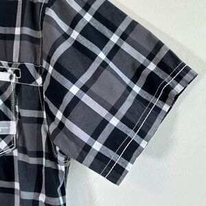 MO7 Black and White Plaid Button Down Collared Short Sleeve Shirt Sz XL