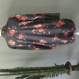 Dark gray background with coral, turquoise, and tan floral print-please note that the gray is a little lighter and the colors a little more muted than the pictures show