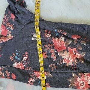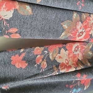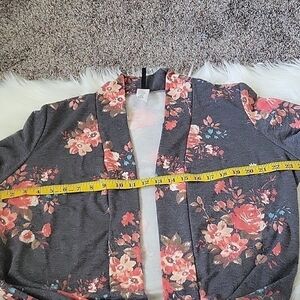 MOA Collection gray cardigan with coral & turquoise floral print-RUNS SMALL