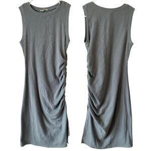 MOA MOA Adjustable Scrunched Side Midi Dress Size Medium Textured Dusty Blue High Neck Sleeveless Casual Stretch Boho Summer