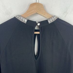 MOA MOA Black Rhinestone Neckline Blouse Cutout Neckline Glam Goth 3/4 Sleeve 1X