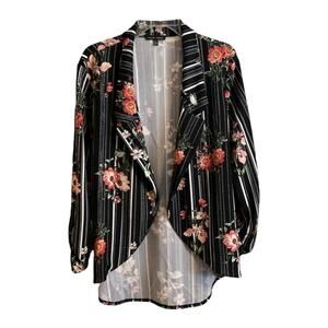 MOA MOA Collection Jacket Womens Size XL Stripe Floral Print Blue Stretch