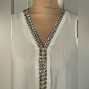 MOA MOA MISSES SIZE MEDIUM SLEEVELESS TANK IVORY PEARL& RHINESTONE ACCENTS NWT