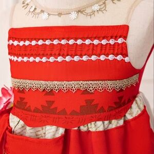 MOANA Red & White Tiered Skirt with Tassel Hem, Lace Trim, sz 6