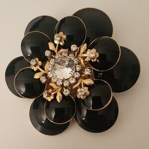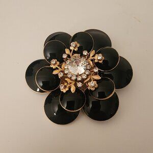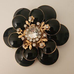 MOANS COUTURE Radiant Petal Duets Poured Glass Jet Flower Brooch