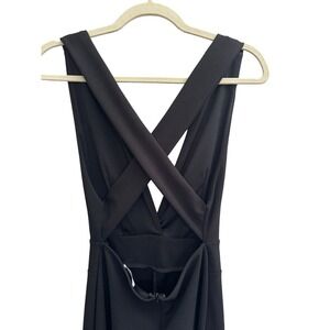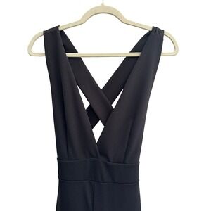 MOCKING JAY Womens Medium Jumpsuit Deep Plunging V Neck and Criss Cross Open Back - Black - very stylish - excellent used condition - see pics for measurements.