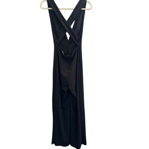 MOCKING JAY Womens Medium Jumpsuit Deep V Neck Criss Cross Back Black #2150