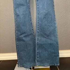 MO&Co. Blue Denim Overall Jumpsuit Front Button Bib Zip Fly Bell Bottom NWOT XS