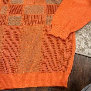 Men’s classic Vintage Retro MOD orange print scoop neck sweater. Mad in Italy. Very soft. Great stretch. GUC . Tag says XXL, modern day medium-LG. See measurements. 27” long and 24” arm pit to armpit.