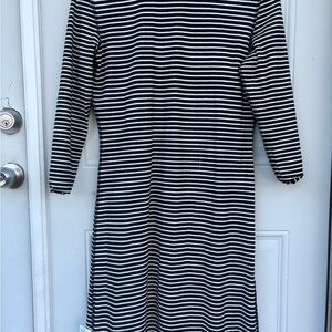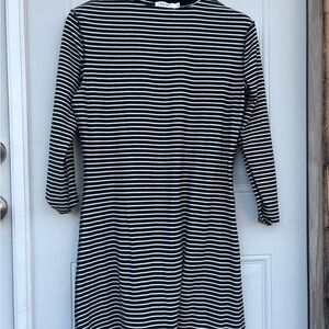 Elevate your wardrobe with this timeless black and white striped dress. Perfect for any occasion, this dress offers both style and comfort.