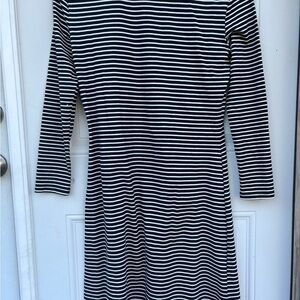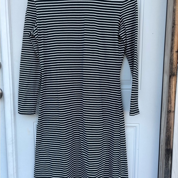 Elevate your wardrobe with this timeless black and white striped dress. Perfect for any occasion, this dress offers both style and comfort.
