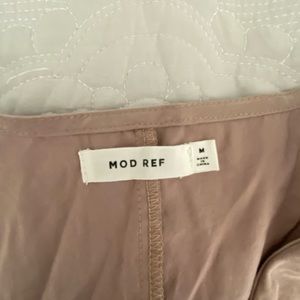 The material isn’t stretchy, but the shorts are flared. The waist tie allows you to cinch the waist if it’s too big.