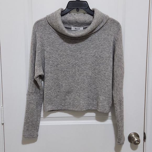 MOD Womens M Gray Cowl Neck Cropped Angora Blend Sweater Dolman Sleeve