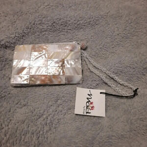 NWT MOD by Design Change Purse Mother Of Pearl & Beadwork Wristlet. Pearl Silver Colors.