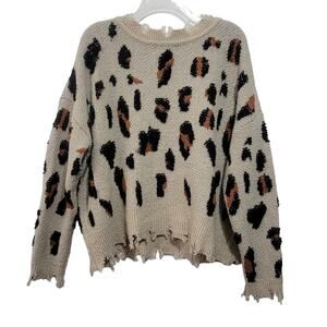 MOD on Trend Womens Cheetah Print Distressed V Neck Sweater Medium