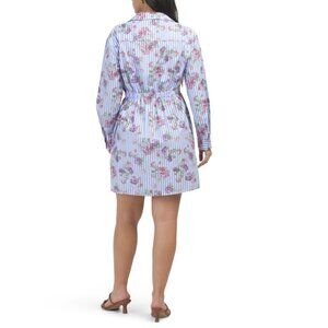 MODA I Blue/White Made In Italy Cotton Blend Striped Floral Shirt Mini Dress
