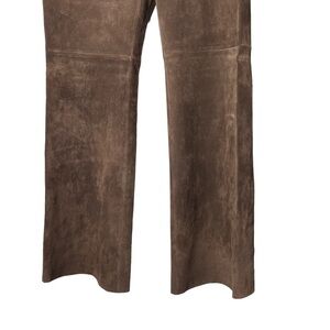MODA INTERNATIONAL Brown Genuine Leather Suede Flare Pants Size 6