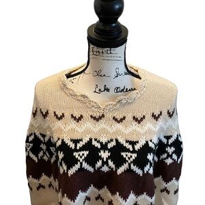 MODA INTERNATIONAL VS Sweater Shawl Brown XS Small Nordic Fair Isle Wool Fringe