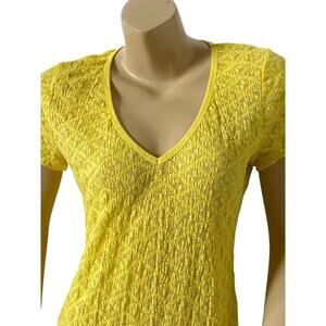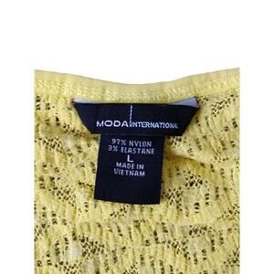 MODA INTERNATIONAL Womens Size Large Sheer Yellow Lace Short Sleeve V Neck Shirt