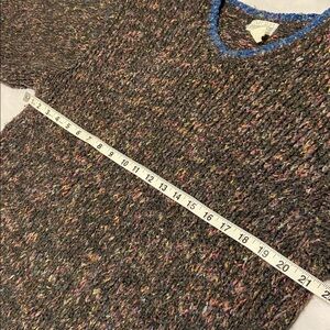 MODA INTERNATIONAL Long Sleeve chunky knit V-neck style with multi-colored yarn and contrasting trim on the neckline, cuffs, and hem