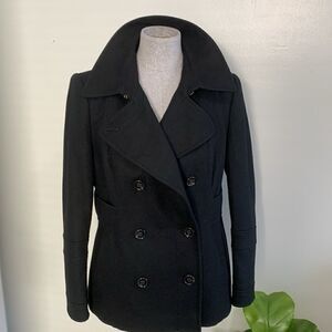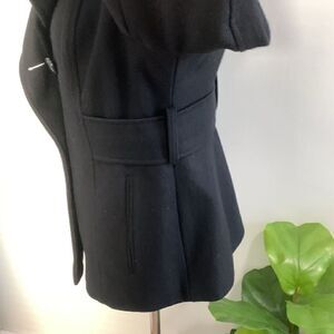 MODA International Black Wool Blend Pea Coat Size Medium Petite
