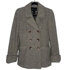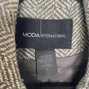 MODA International Gray White houndstooth Wool Blend Double Breast Coat Sz S