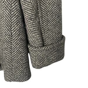 Gray and White houndstooth Wool blend coat. Notch collar, Double breasted, Cuff sleeve, waist length. Fully lined, two side pockets, back vents.