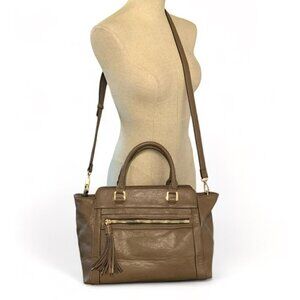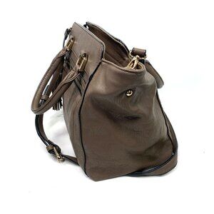 MODA LUXE Faux Leather Satchel with Tassel Brown/Gold Polka Dot Lining