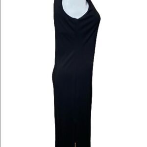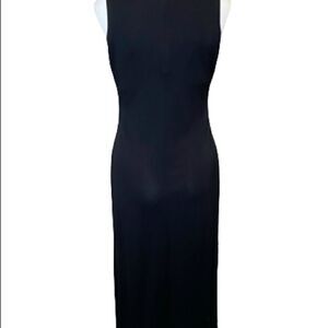 MODA International black sleeveless maxi dress size MP. Partial lining under the breast area. Side slits on both sides. Very good condition. Zipper back. Semi fitted. The perfect little black dress. 70% rayon 30% polyester. Length 47” Chest 17”.