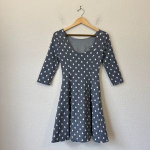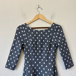 MODCLOTH 3/4 Sleeve Star Print Sheath Mini Dress in Grey Sz S W7361