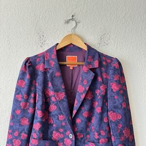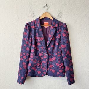 MODCLOTH Blazer Jacket Blue Red Floral Lined Brocade Office Preppy 90s