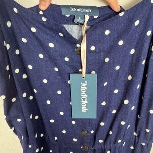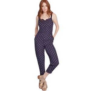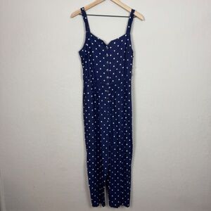 MODCLOTH Every Waking Momentum Navy Polka Dot Jumpsuit