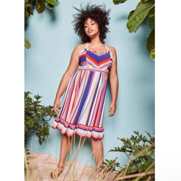 MODCLOTH Frequently Piquant Colorful Striped Halter Dress is gentle worn like new. Size: 4X