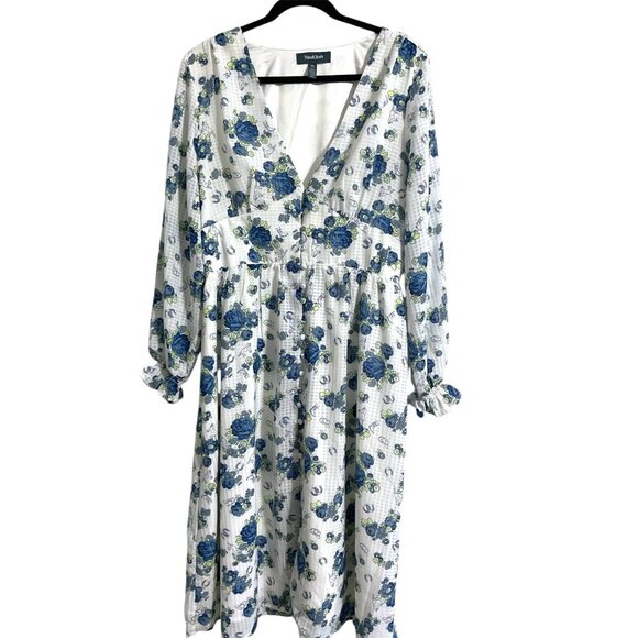 *MODCLOTH Howdy Petal Partner Button-up Floral Midi Dress Blue size XL