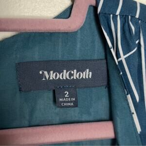 MODCLOTH Instant Energy Faux-Wrap Dress Blue Floral Stripe {3K51}