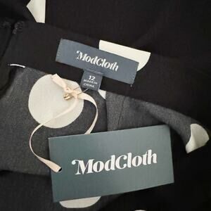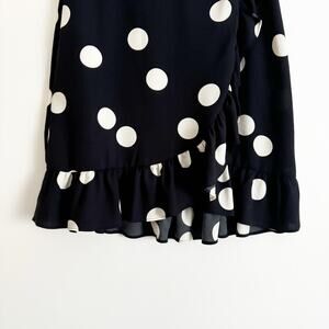 MODCLOTH It's A Wrap Ruffled A Line Skirt Polka Dot Black White 12